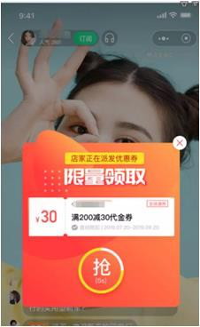 这个主要是在直播间做互动的,主播可向当前在直播间内的粉丝发放优惠券,同时可以限定优惠券数量,粉丝可在 10s 倒计时后的弹窗领取