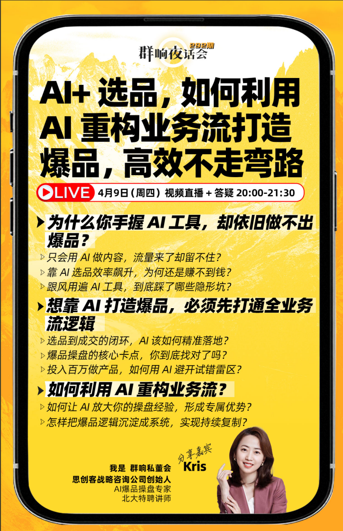 夜话会 292|AI+选品,如何利用AI重构业务流打造爆品,高效不走弯路